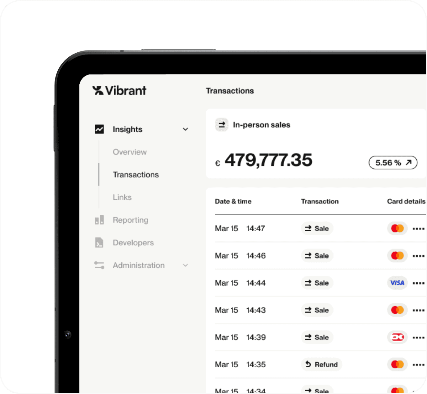 "Revolutionary app, it replaces the card reader terminal and works perfectly. Transactions are fast. Easy setup and excellent customer service. Well done Vibrant!"