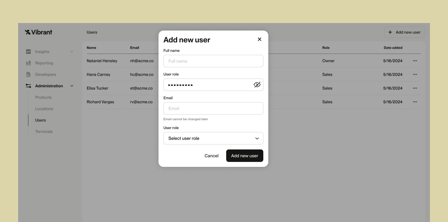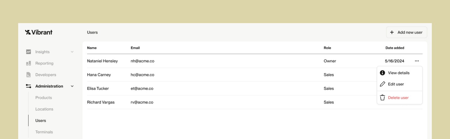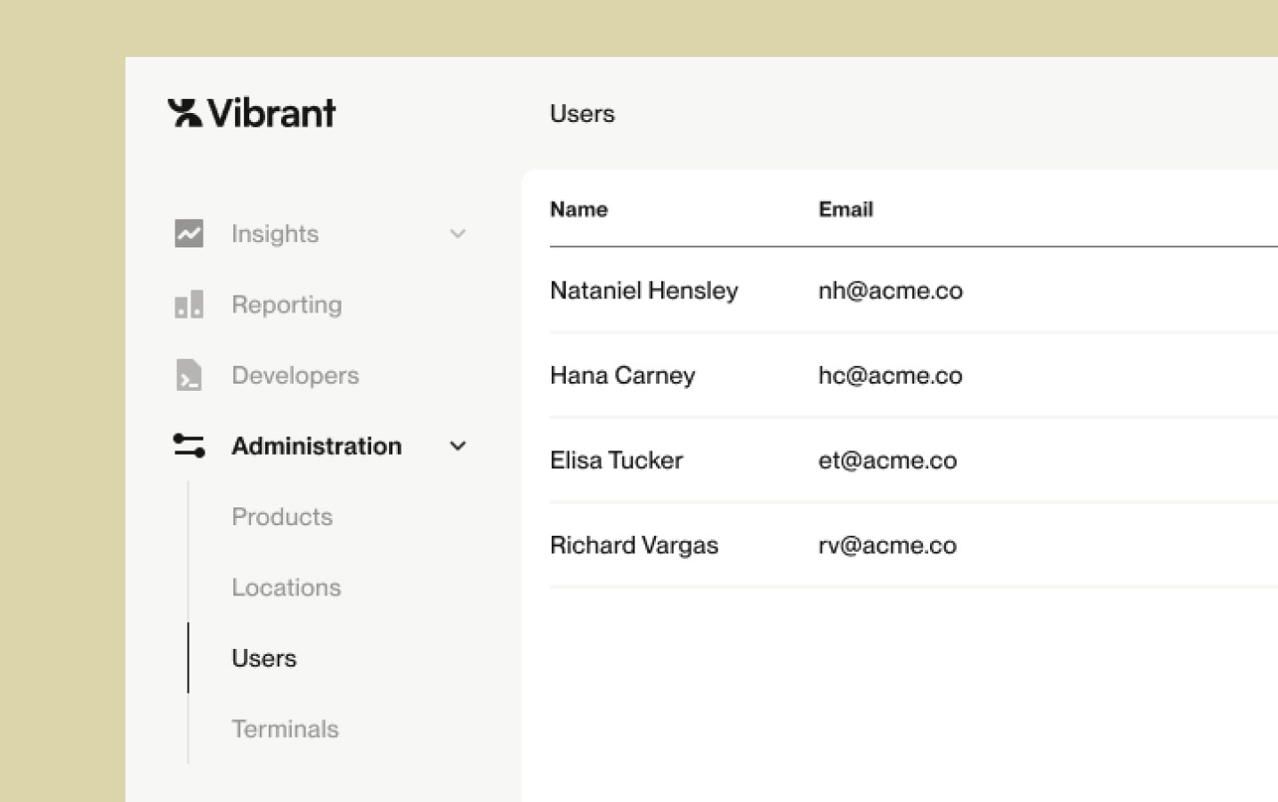 Det er nemt at administrere dit team på Vibrant betalingsplatformen!
