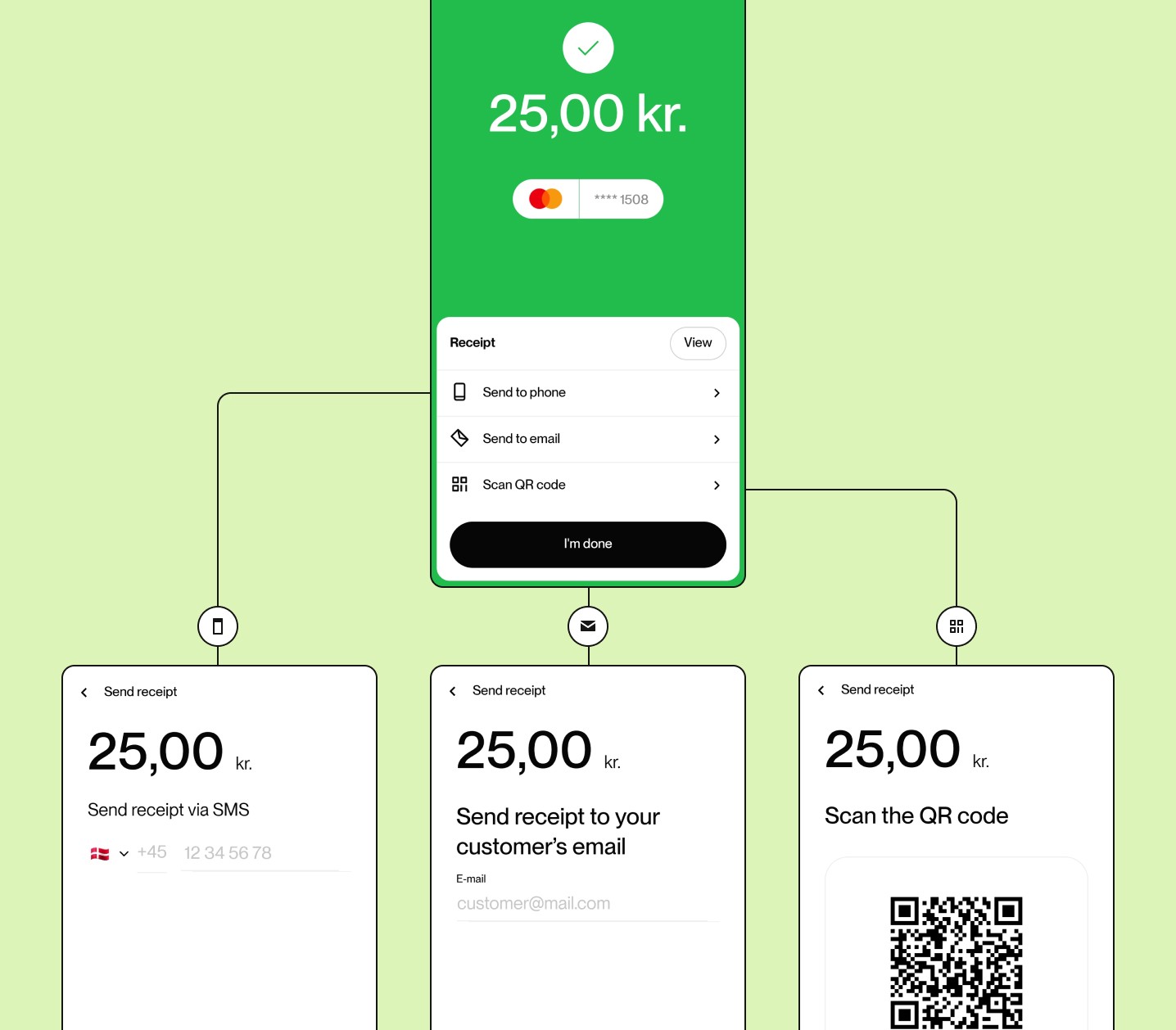 QR Code: Display a QR code on the terminal screen. The customer can scan this code with their phone's camera to access the receipt online.